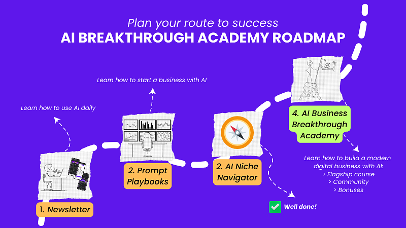The next step is to start building out and launching your business for real. To support you on that journey, I highly recommend checking out my AI Business Breakthrough Academy.